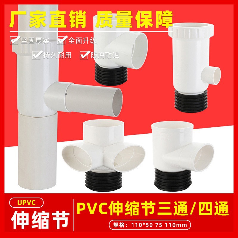 Pvc110排水管伸縮節三方延長快速修理110*50変径異径三方110*75管