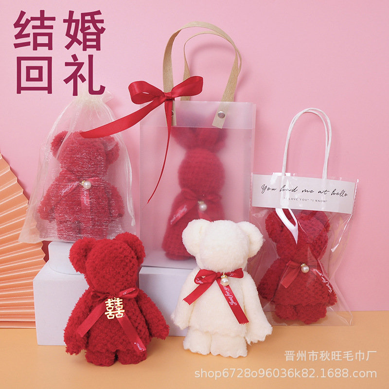 大きな赤い結婚タオルのお土産ウサギの熊の形35*75洗顔タオルのギフトタオルは決められます。