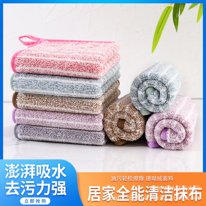 新製品の経編サンゴの綿毛の方巾の台所の雑巾は油をつけないで清潔にします。