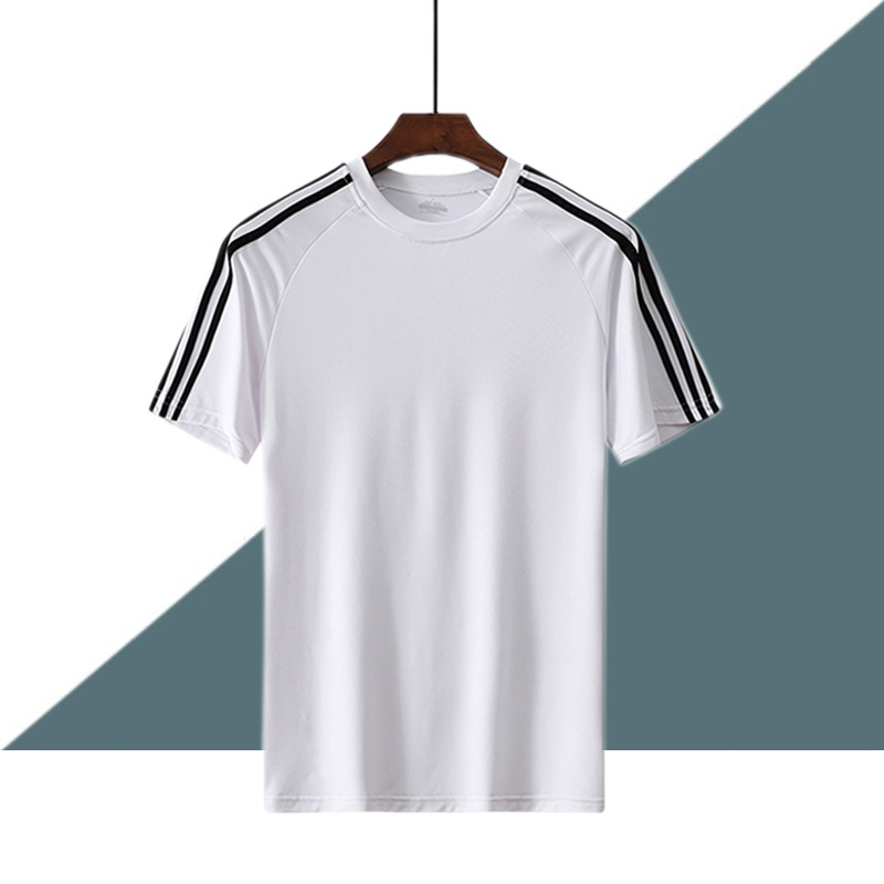 大きいサイズクラシック三条棒メンズ丸襟夏スポーツカジュアル半袖tシャツファッション速乾ストレッチショートt