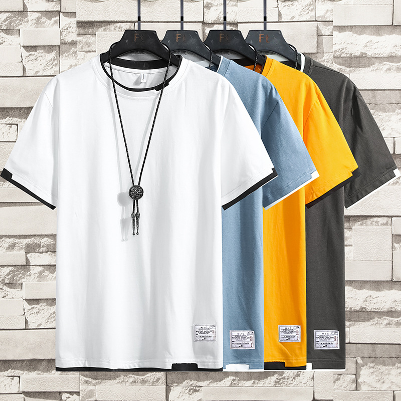 スポーツレジャーtシャツ偽二枚半袖夏綿綿通気ファッション