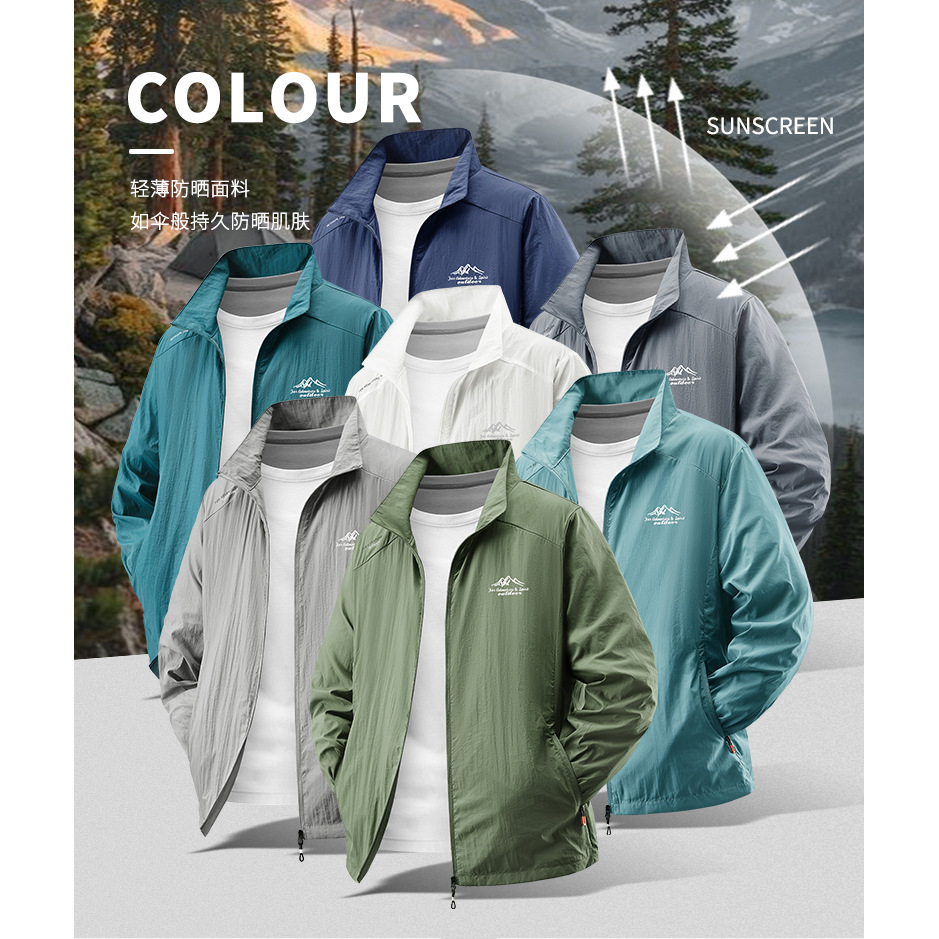 2025 日焼け防止服メンズ夏薄手トップトレンディスタンドカラージャケットカジュアル多用途薄手ジャケットファッション