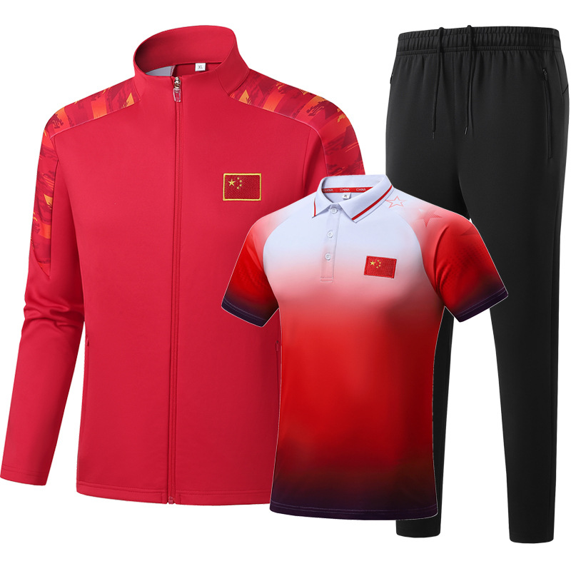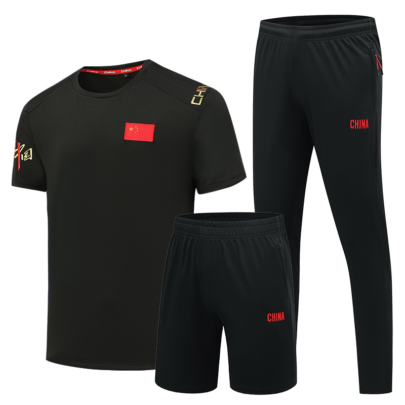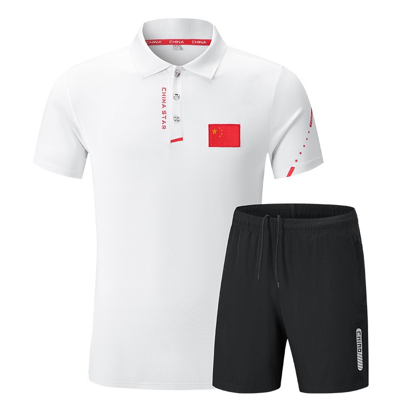 夏の中国チームスポーツスーツ男性と女性のアスリート国家服スポーツ学生トレーニングスーツ武道コーチ半袖ショーツ