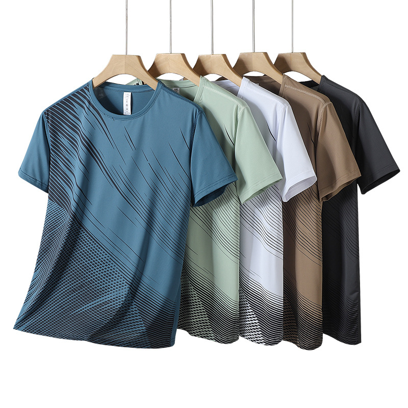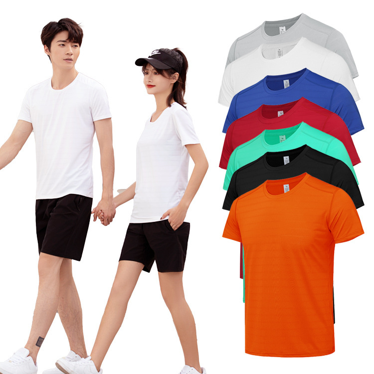 2025夏の新型氷糸涼感男快乾丸襟半袖tシャツアウトドアスポーツランニング半袖カップルtシャツ