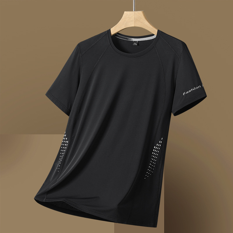 2025 新アイスシルクショート Tシャツメンズフィットネスアイスシルク半袖メンズ通気性メッシュルーズプラスファット