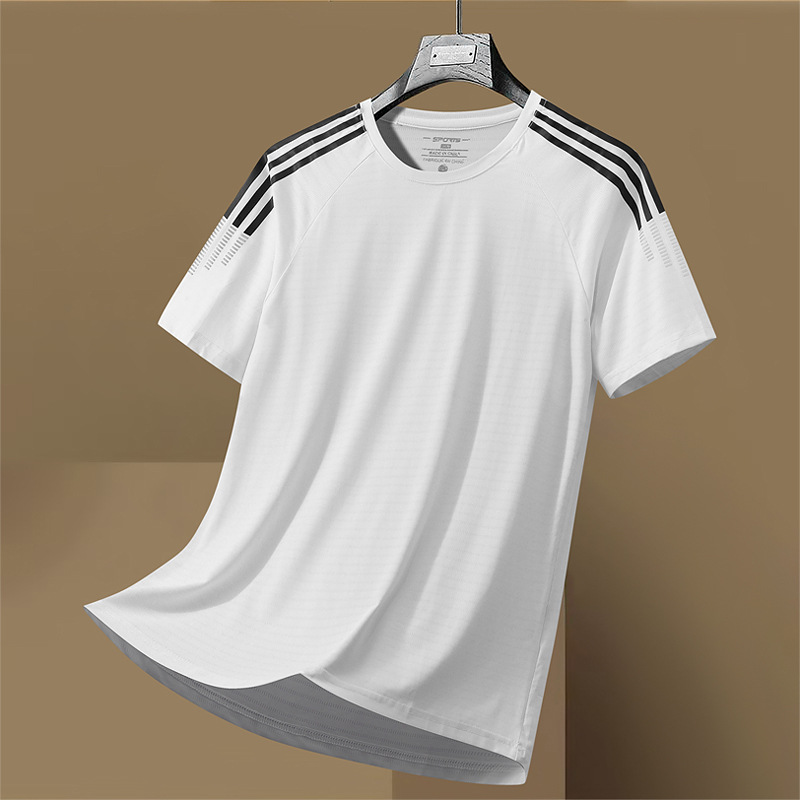 2025新型夏三本棒半袖tシャツ男性丸襟氷糸錦アンモニア高弾青少年tシャツ男
