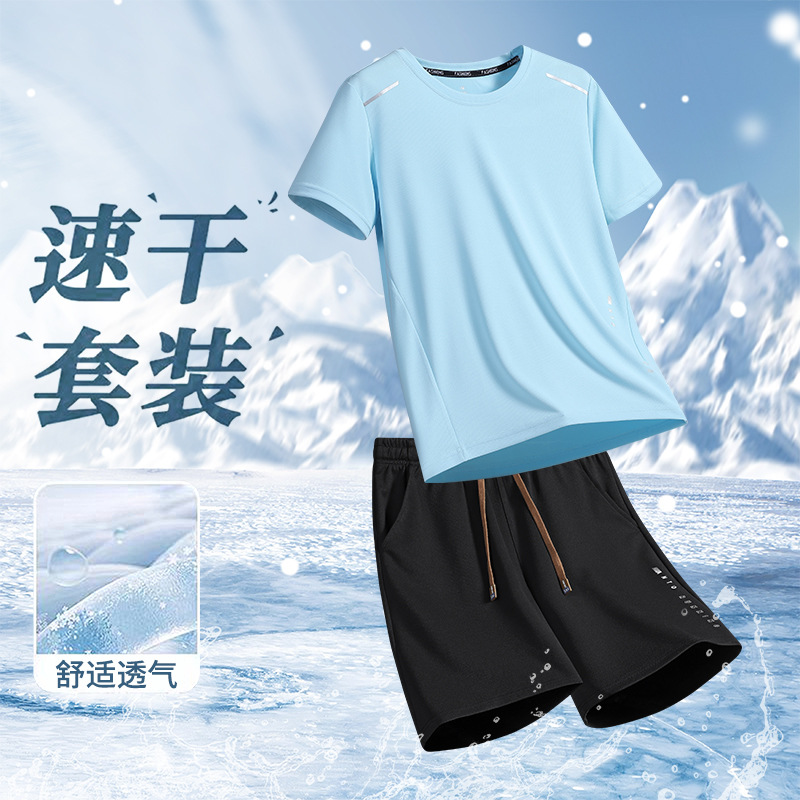2025男性の夏の新型半袖半ズボンスポーツスーツカジュアル速乾男性スーツ2点セット
