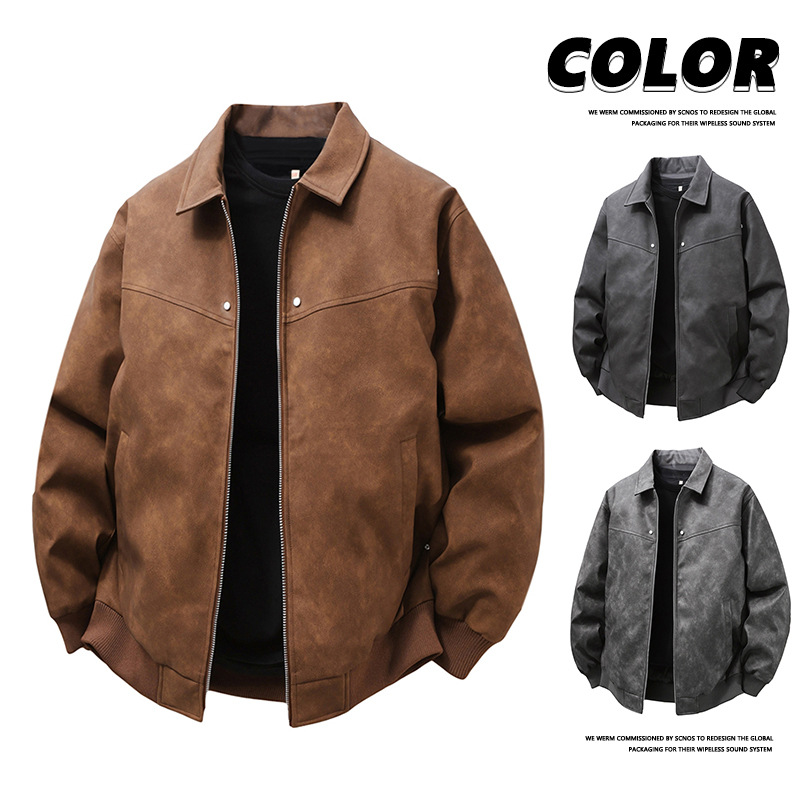 2025春秋の水洗い革ジャケット男性ファッションアメリカのレトロでカジュアルなコートとカジュアルなスポーツ