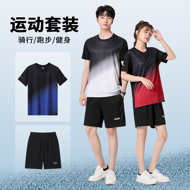 スポーツスーツ男女夏フィットネス半袖tシャツメンズ速乾服バドミントン服ランニングゆるいカジュアル
