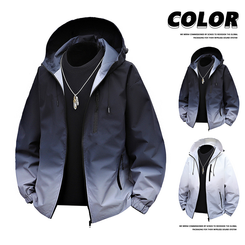 2025ジャケット男性ファッションファッションファッションカジュアルフード付きジャケットグラデーション色青少年春秋ジャケットコート