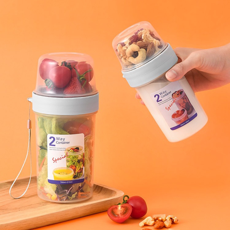 二重のタッパーは携帯して外出する食品の密封の箱のサラダのプラスチックの弁当箱の密封の缶を携帯します。