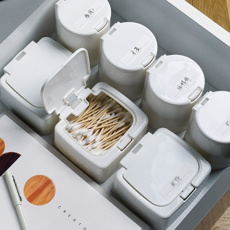 防塵綿棒収納ケース引き出しデスクトップ雑物小箱学生化粧綿ケース弾蓋収納ケース
