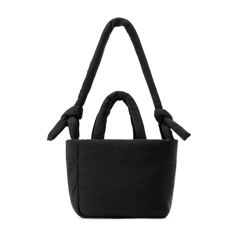 カスタマイズされたニッチデザインの調節可能なソリッドカラーのコットンショルダーバッグ、ファッショナブルでカジュアルな軽量ダウンポータブルクロスボディバッグ