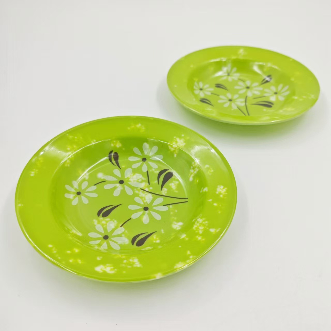 グリーン模造磁器皿雪花模様小皿直径約15cm 1元2元小商品