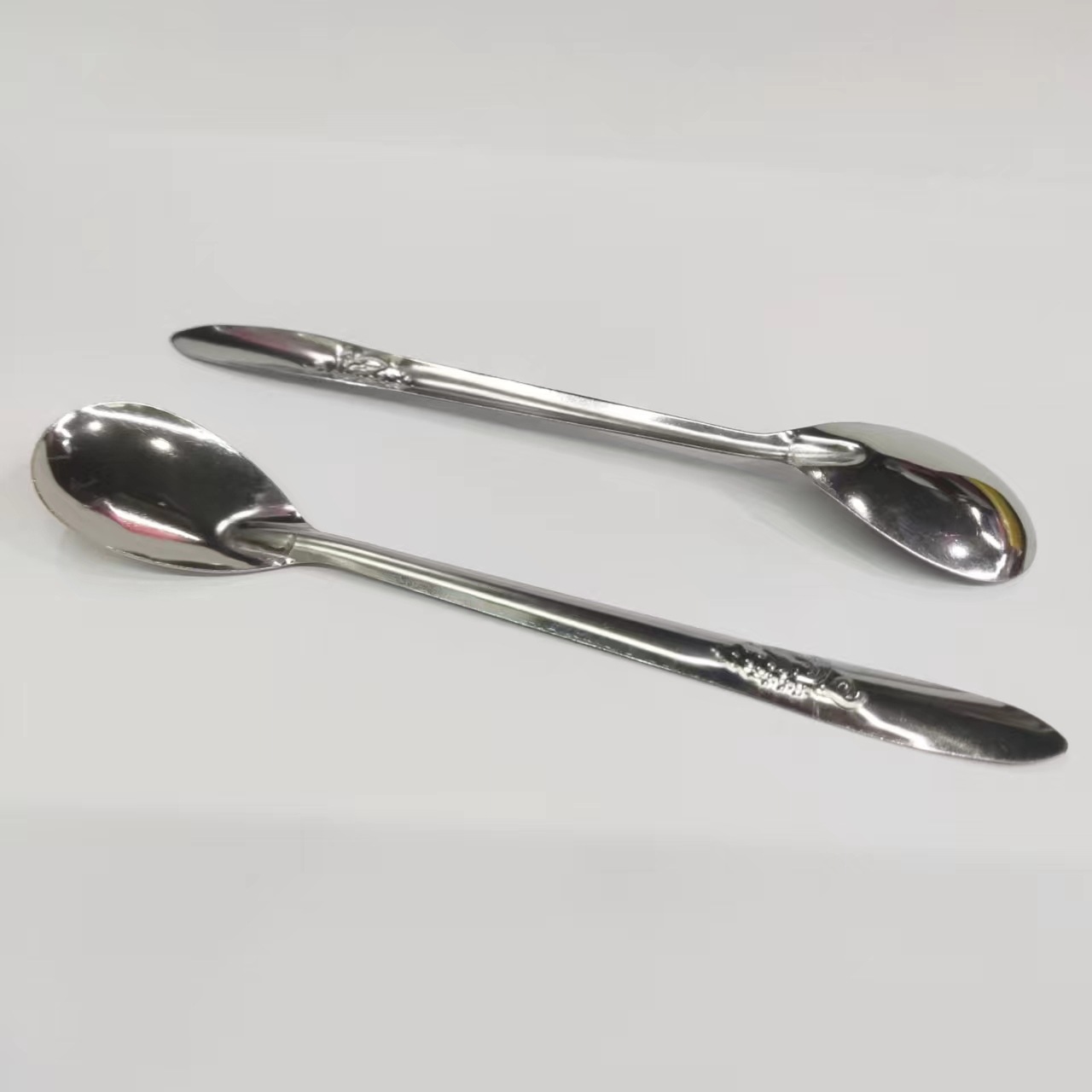 長い柄のステンレスの丸い頭のスプーンのコーヒーのスプーンは調味料のスプーンを入れます。