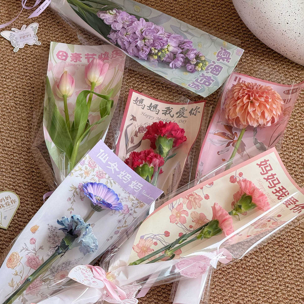 母の日シングルカーネーションカードフラワーブーケ包装紙袋手作り diy ママギフトフラワーショップ素材