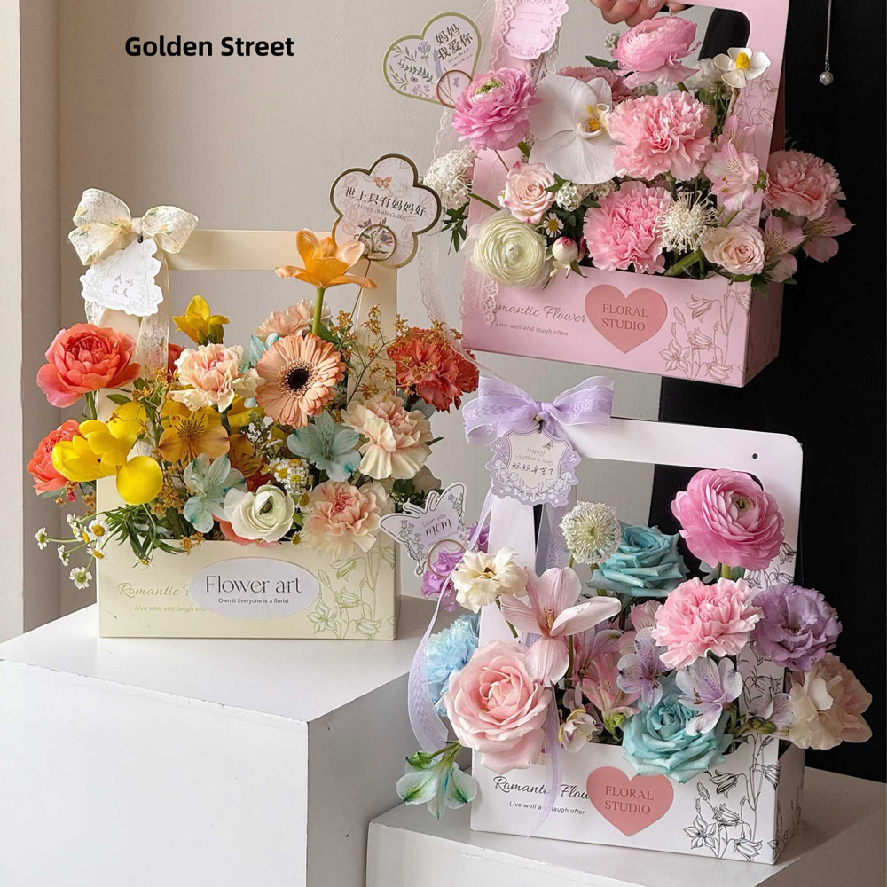 2025母の日すずらん手提げ花箱ギフトボックス新鮮な花束生け花手作りdiy空箱花屋花芸資材