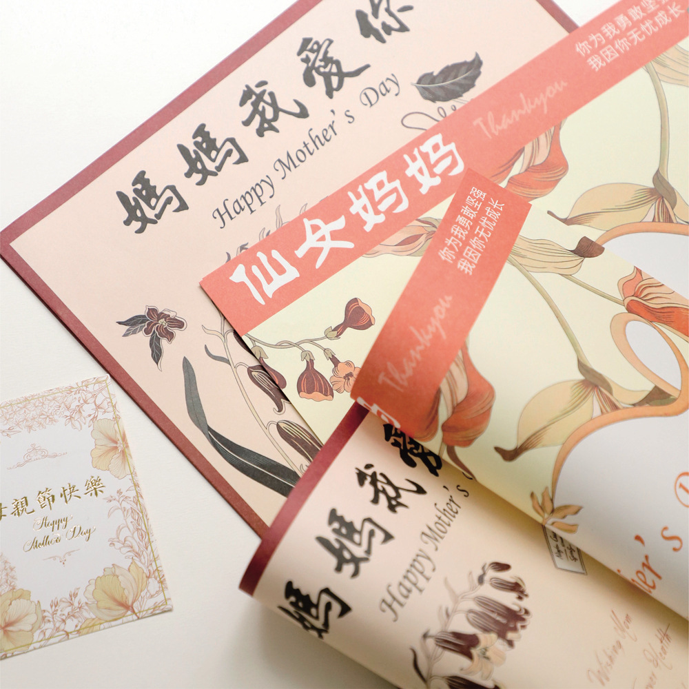 感謝の母の日楽しい箔押しカードカード新鮮な花束プレゼント手作りdiy花芸花屋資材