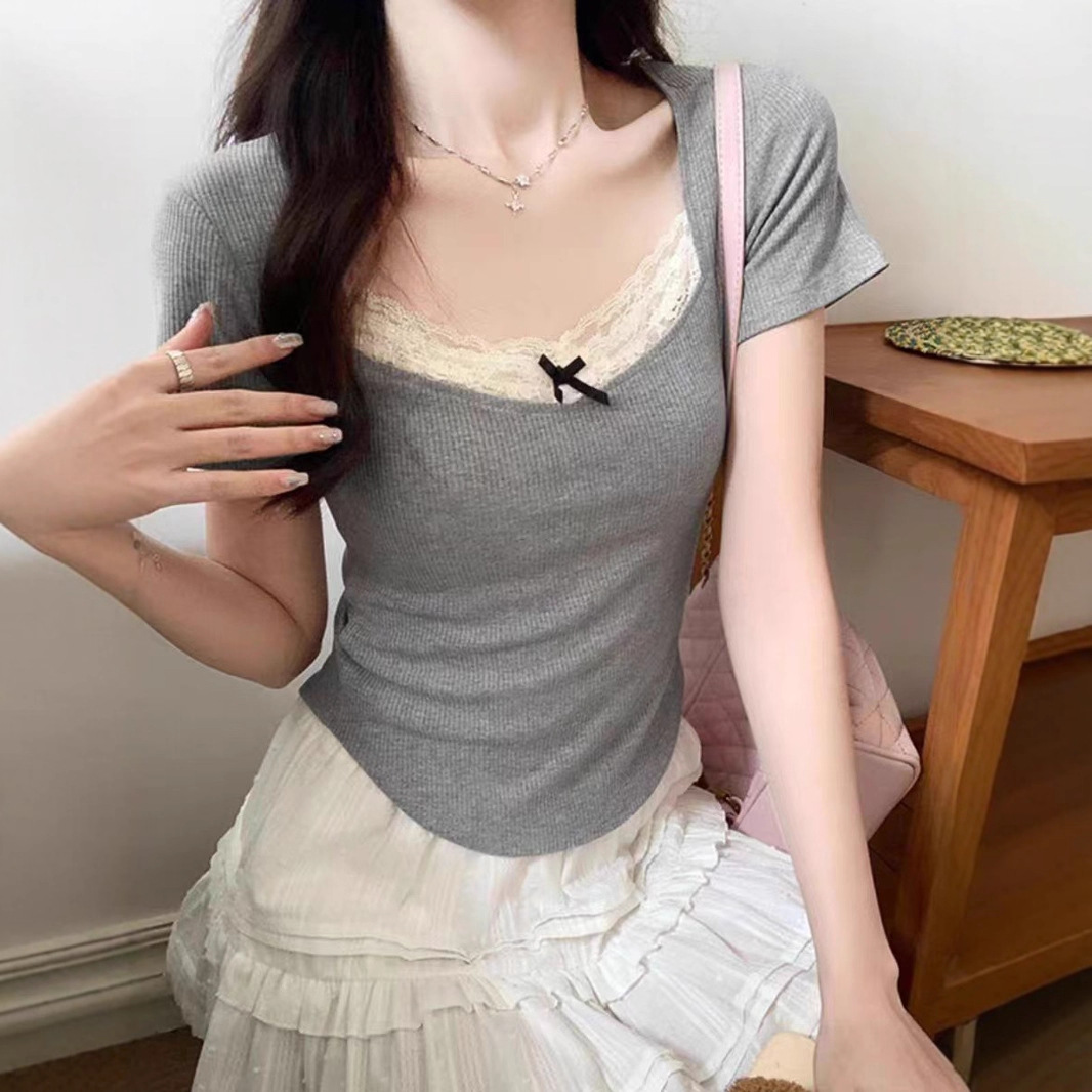 レースショルダー半袖Tシャツレディース2025夏新作スリムフィットピュアディザイアBMスタイルインナートップ