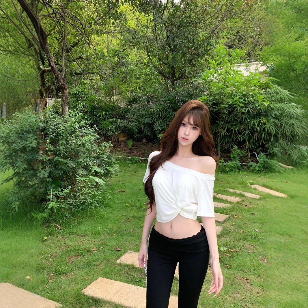 2025 新しい白い V ネック右肩多用途半袖 T シャツ女性のための春と夏 5 新しいハイエンドのボトムスとホットガールの服