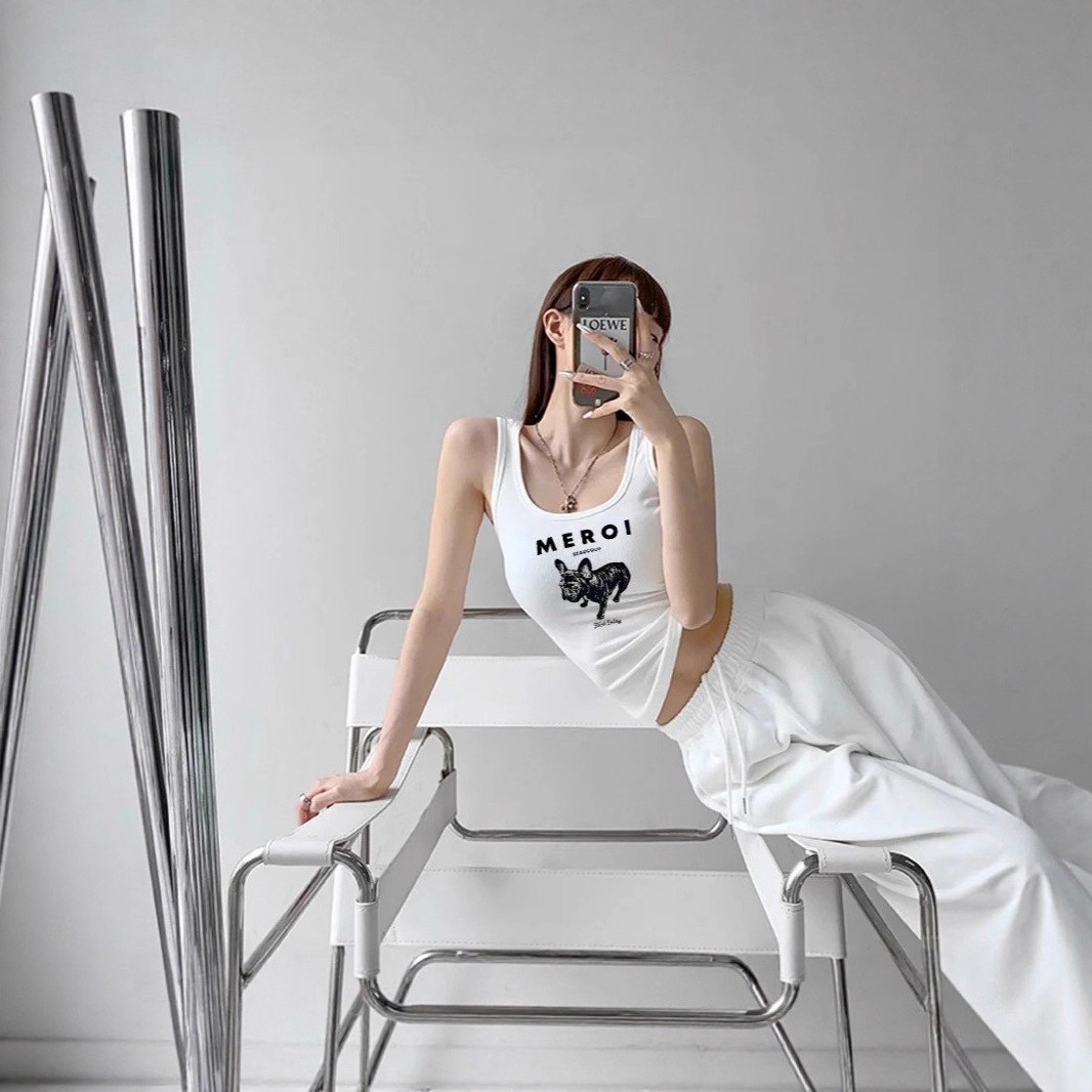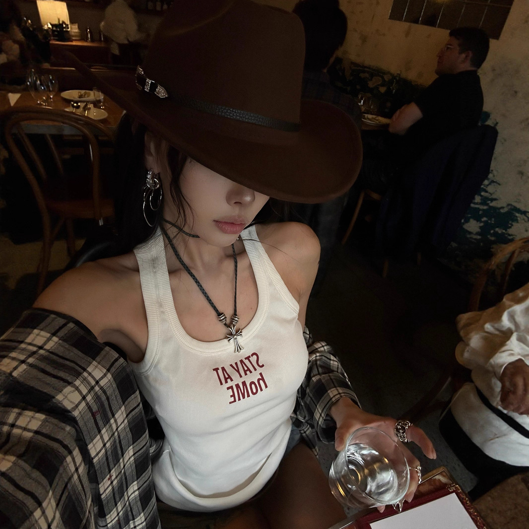 アメリカンレトロレタープリントキャミソールレディース夏新デザインニッチスリムフィット万能トップ