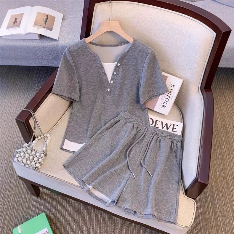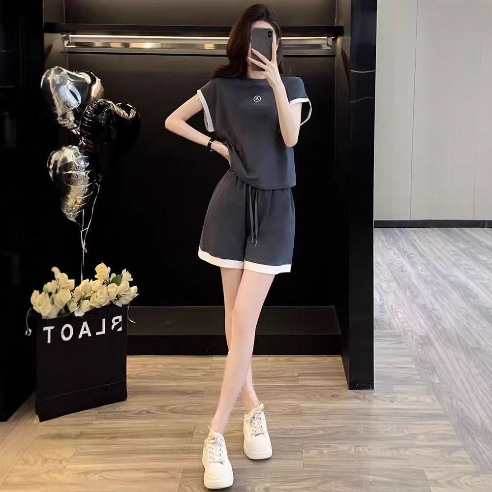 ファッションカジュアルスーツ女性のための夏の 2025 新しい小柄な韓国スタイル半袖ショーツインターネット有名人スポーツウェア 2 点セット