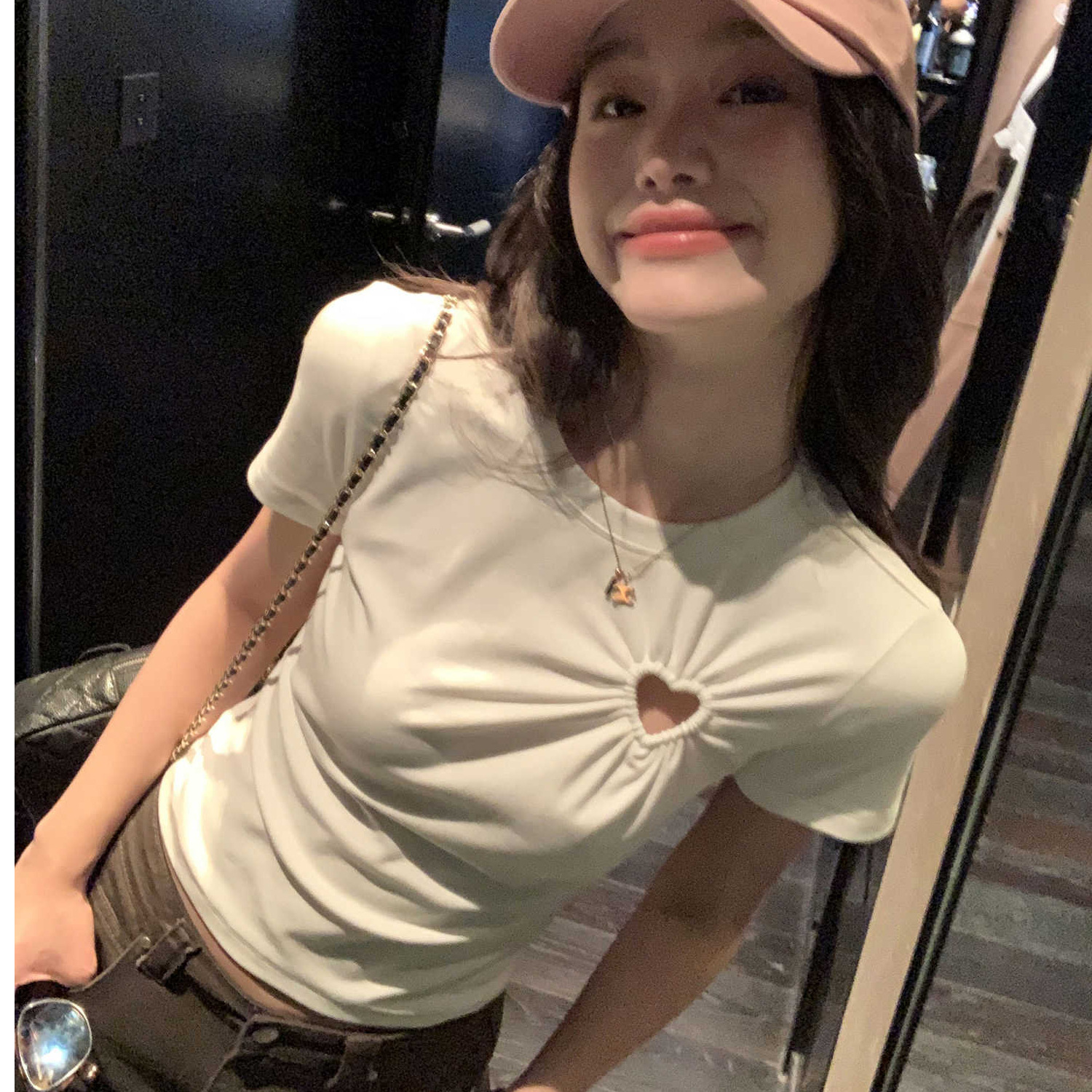 2025 新しい夏の右肩中空デザインラブショート Tシャツ女性のニッチホットガール多用途カジュアル半袖