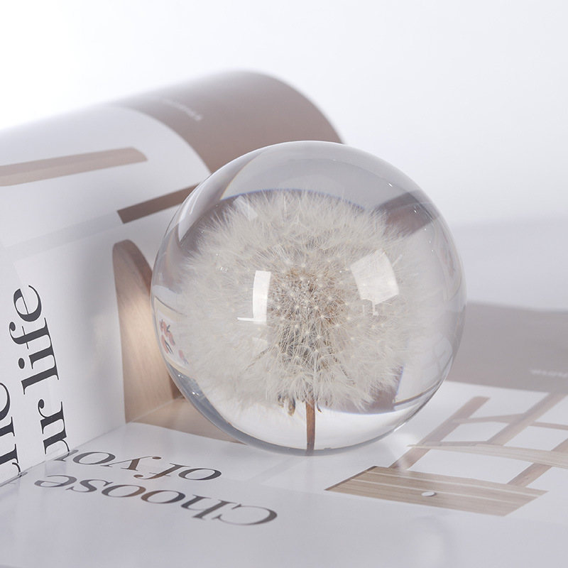 創意樹脂生花水晶玉標本永生花水晶玉タンポポプレゼント置物紙鎮