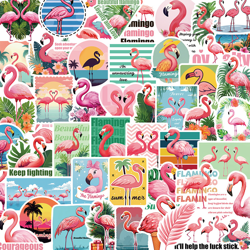 フラミンゴステッカー50枚ピンク色絵女の子手帳素材ノートスーツケース水カップ装飾ステッカー