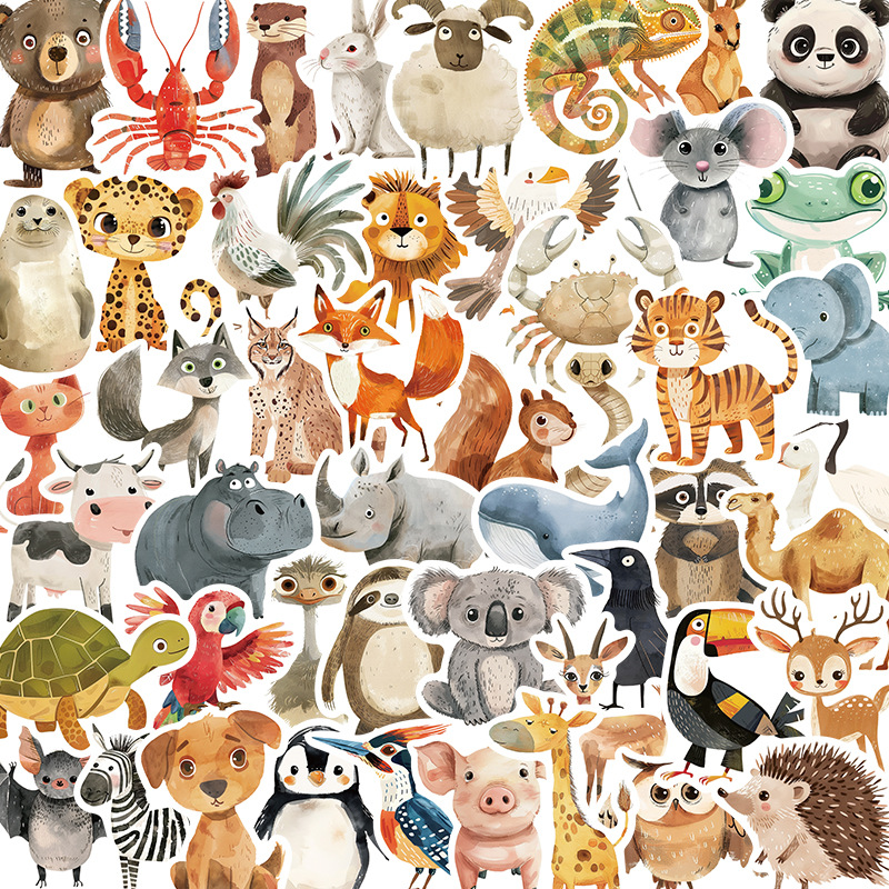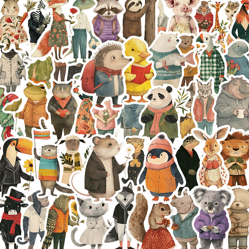 50枚レトロ動物クリップアートステッカーかわいい落書き手帳カップ携帯電話DIY装飾防水ステッカー