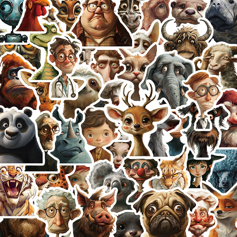 50枚のグロテスクな似顔絵ステッカーかわいい動物水カップノート携帯電話DIY装飾ステッカー