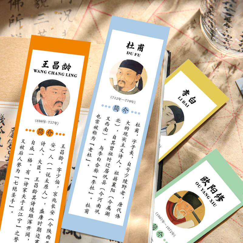 30枚の詩人がブックマークを歌う古詩と詞の文人手帳文芸創意素材学生の読書マーク紙の本挟み
