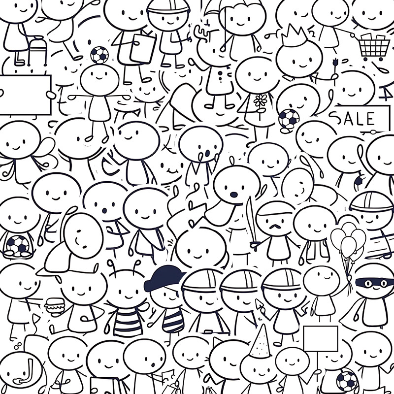 66枚q版小人絵画素材ステッカーかわいい落書き手帳携帯電話ノートパソコンDIY装飾防水