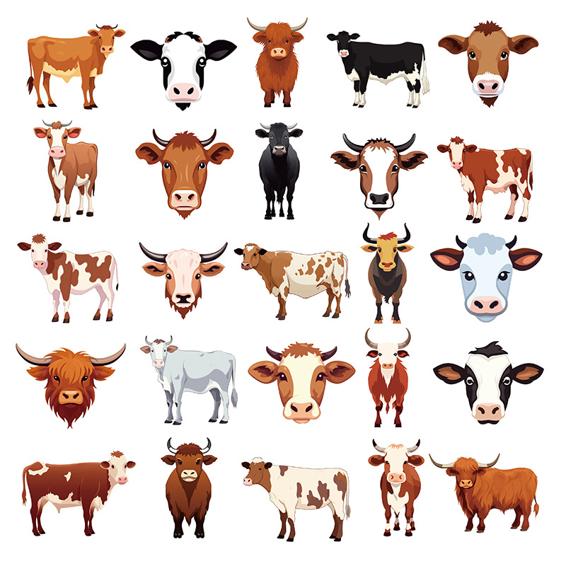 50枚の漫画の色絵の牛のシールの動物の落書きの手帳の素材の携帯電話のノートパソコンのギターの装飾のステッカー