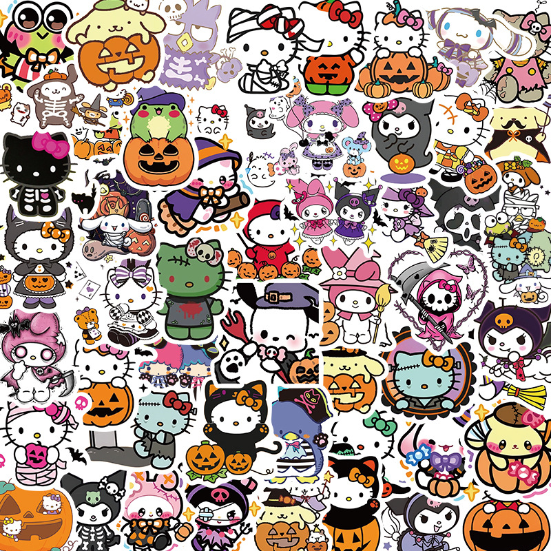 52枚ハロウィーンq版サンリオステッカーキティクロミ手帳携帯ノートパソコン装飾ステッカー
