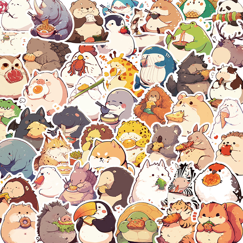 50枚の太った動物の食事シールかわいいアニメ落書き手帳携帯電話ノートパソコン装飾ステッカー