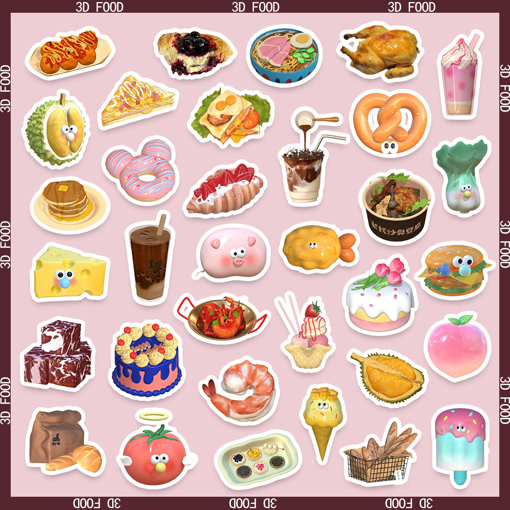 65枚のかわいいアニメ3d風グルメ落書きシール装飾学生パソコン携帯電話カップpvc手帳ステッカー