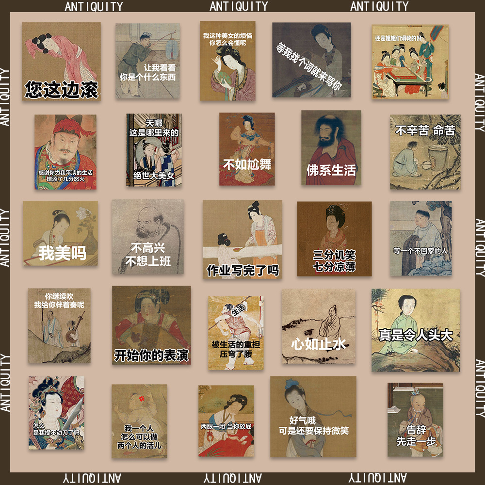 65枚の重複しないお笑い古風表情バッグシールdiy携帯電話ノートパソコン学生手帳プレゼントシール