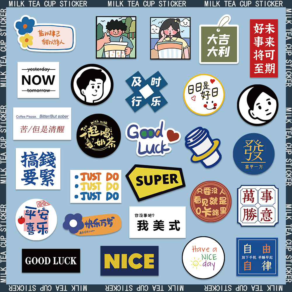 65枚使い捨てコーヒーカップミルクティー紙コップ装飾シール防水diy出前飲料ミルクティー店貼り絵