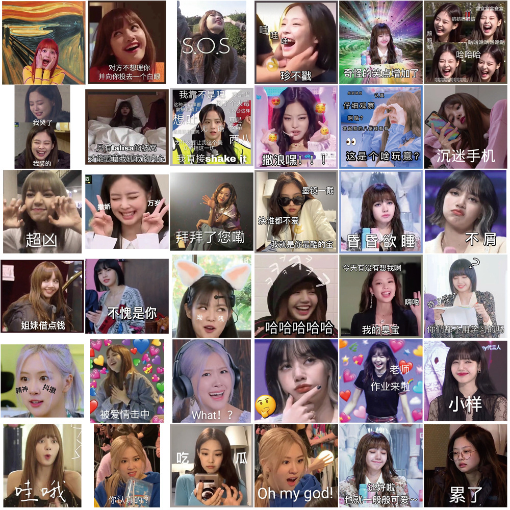 ブラックピンク粉体表情パック防水シールdiy装飾ipadパソコン携帯電話カップ手帳シール65枚