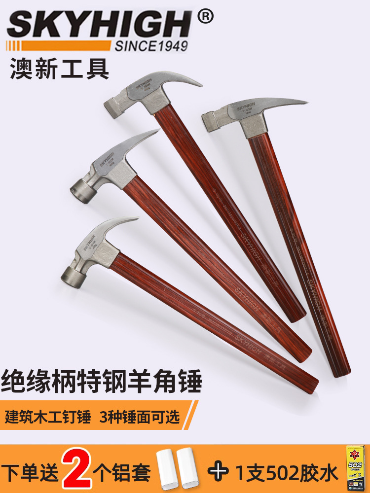 澳新羊角ハンマー特鋼ハンマー8両絶縁柄木工ハンマー丸頭直角工事現場大工抜打ハンマー