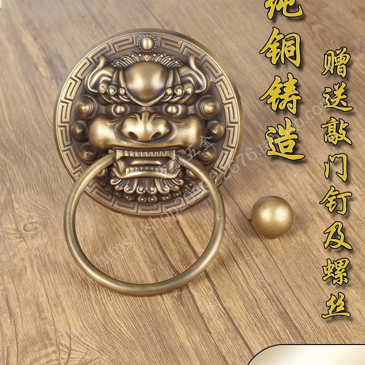 M & 中国式模造古獣頭門取っ手獅子頭門取っ手庭門祠堂装飾古建木戸銅門