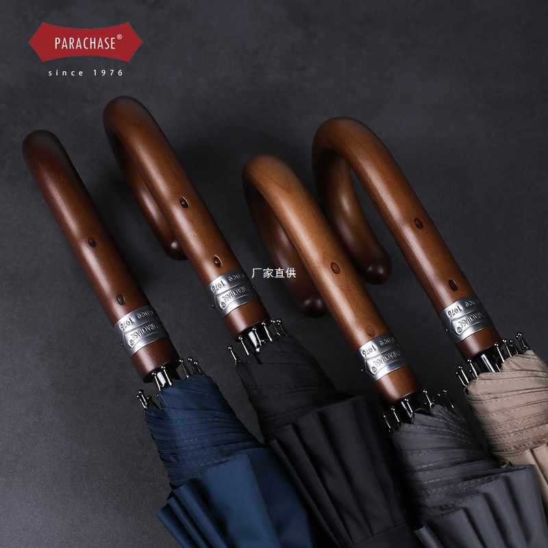 12骨レトロストレート傘女性自動長柄傘補強抗風男性傘英倫ビジネス傘実木長傘