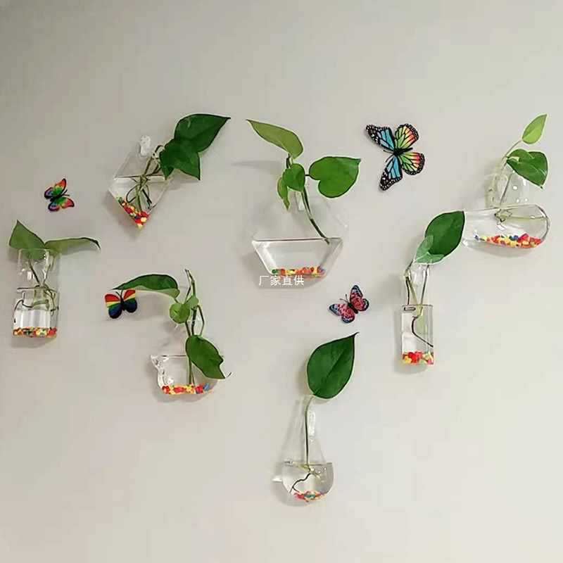 壁のペンダントの水培花瓶の壁に魚の水槽を掛けます。