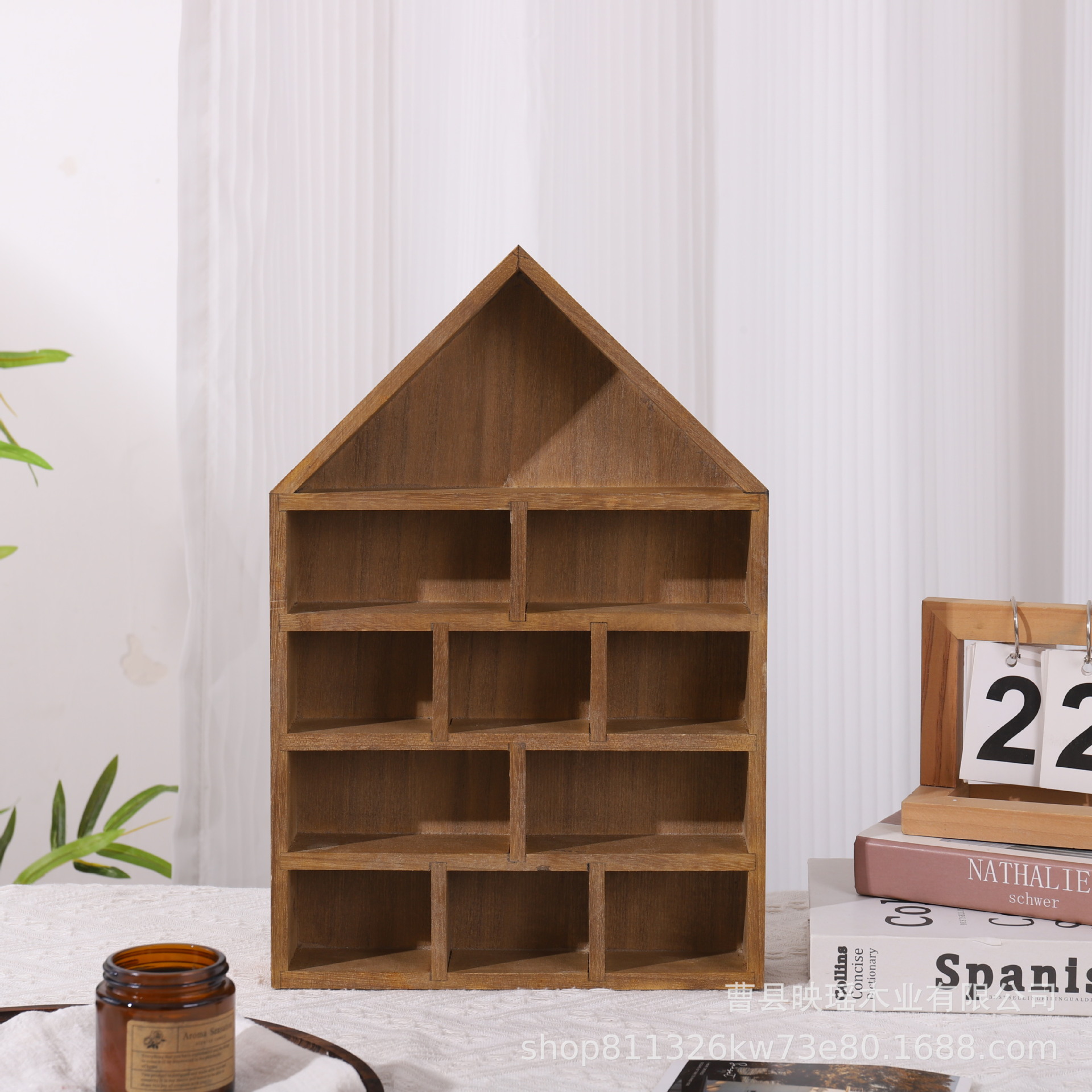 木製レコード棚デスクトップ置物透明ビニールレコード展示棚テープ書籍収納箱実木収納棚