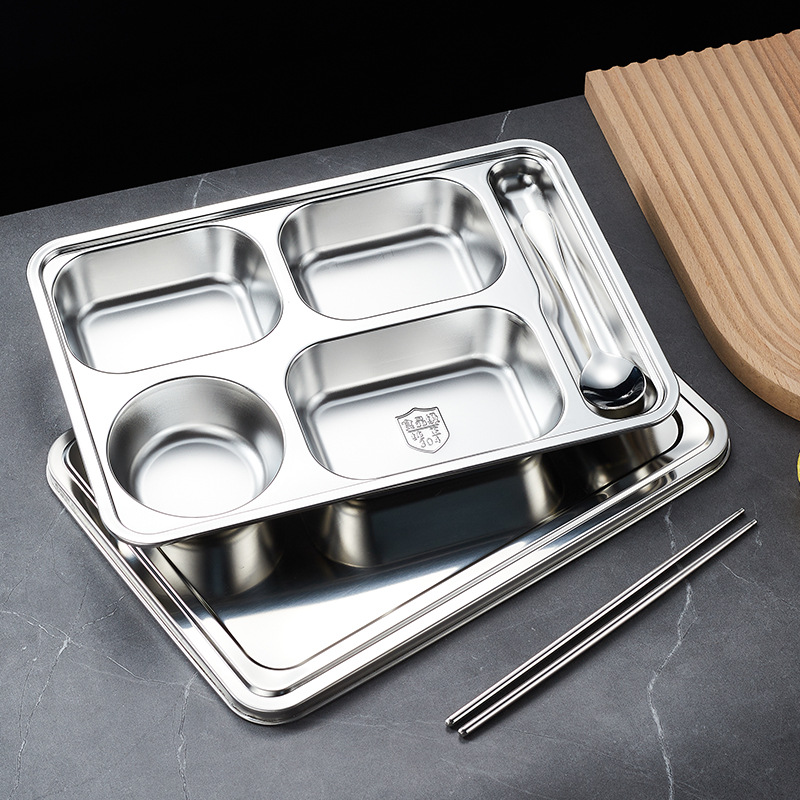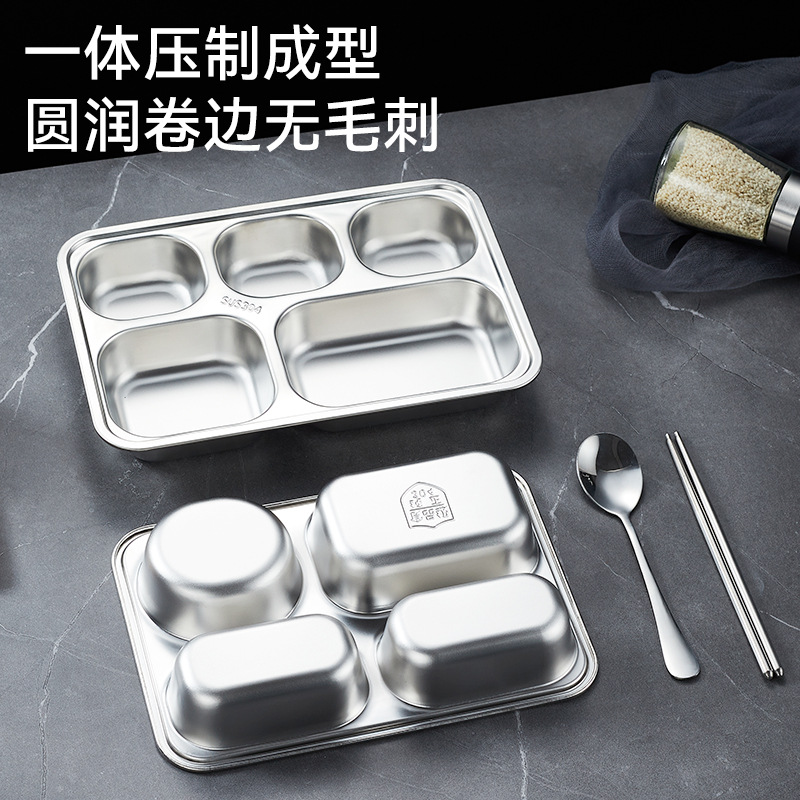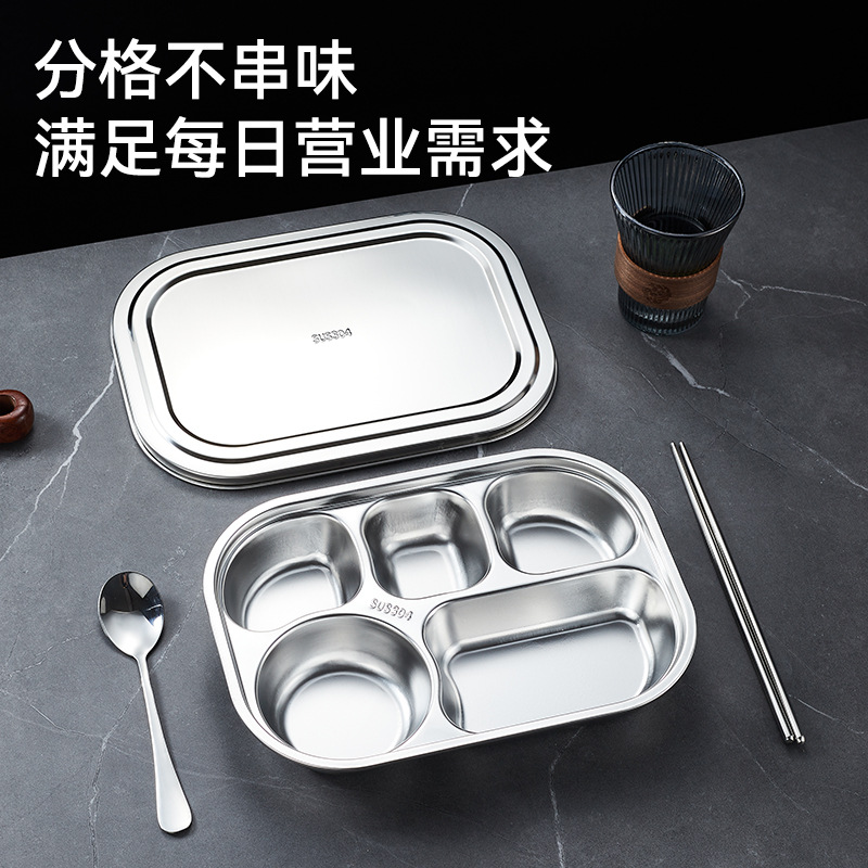 食品級正方形304ステンレス子供ファーストフード皿分格防投家庭用学生食堂食事皿