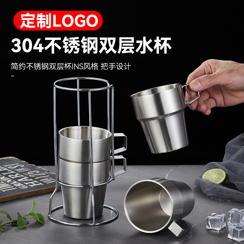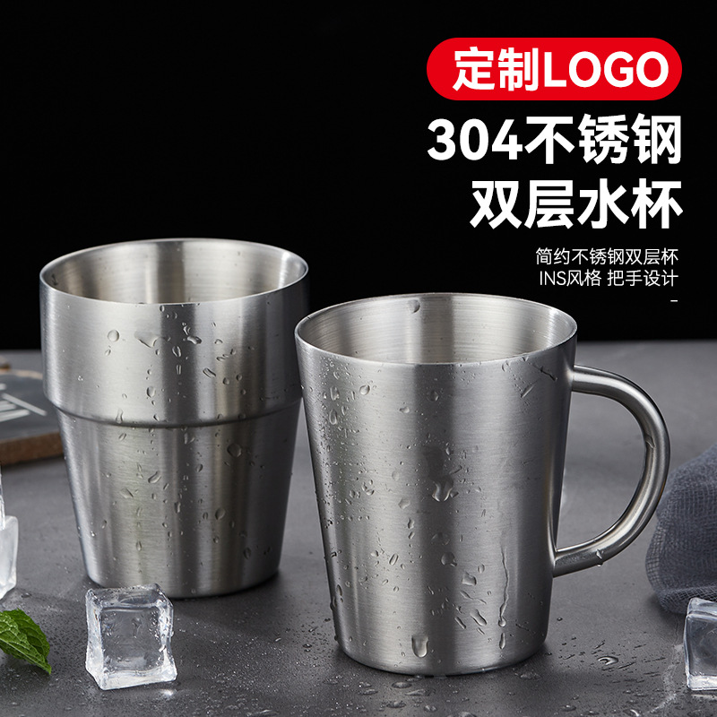1つのカスタムロゴ韓国式304ステンレス二重飲料カップ耐熱防熱レストランコーヒーカップ
