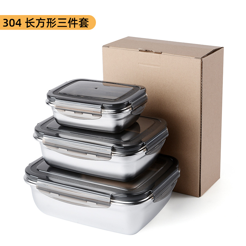 304ステンレス冷蔵庫タッパー316弁当箱アマゾン密封箱タッパー3点セットクロスボーダー