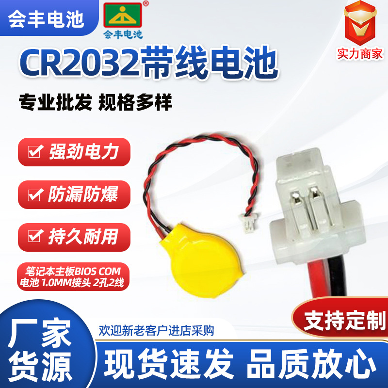 CR2032ボタン電池、ワイヤー付き、1.0白色端子、逆接続、BIOSマザーボード電池、国産ボタン電池