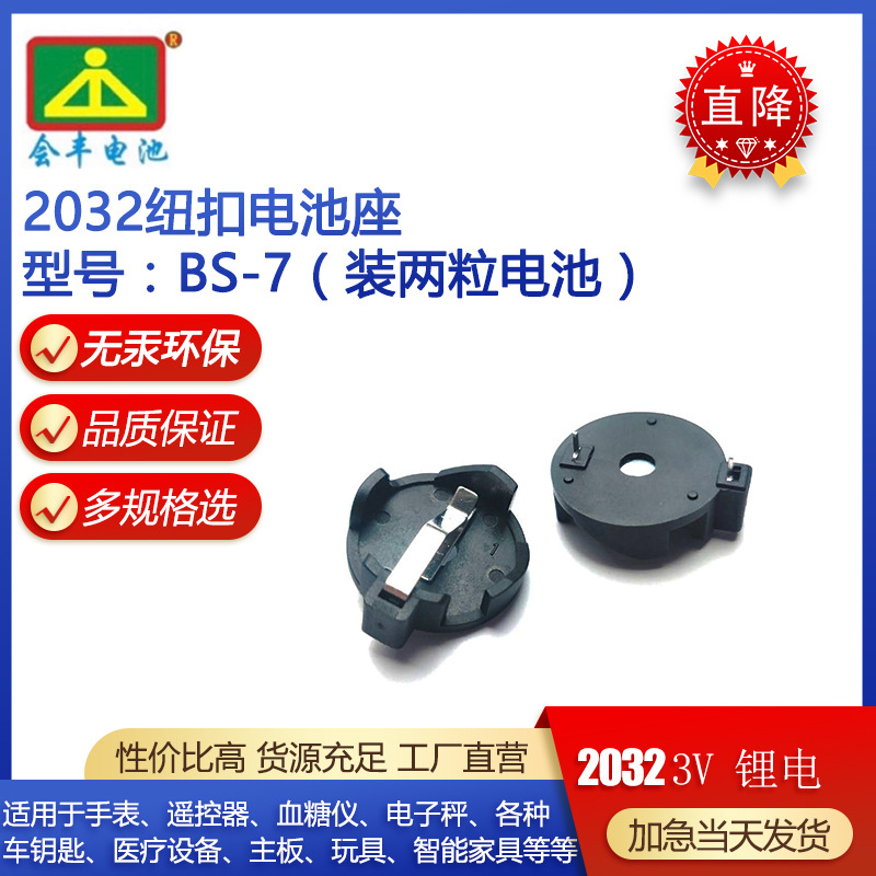 CR2032電池ホルダーBS-7 2つの電池ホルダー横型インラインボタン電池ホルダー電池ケースメーカー卸売り